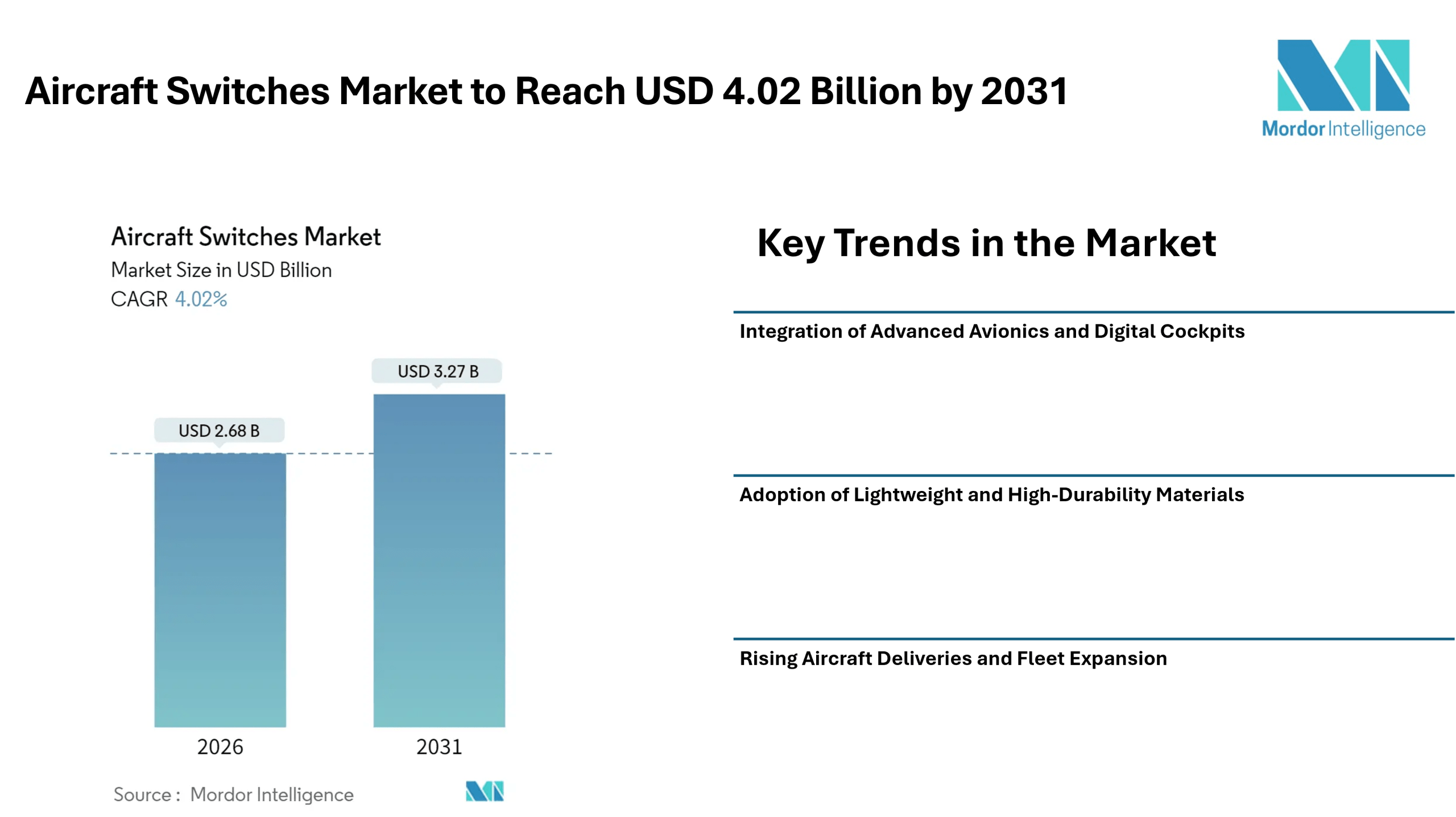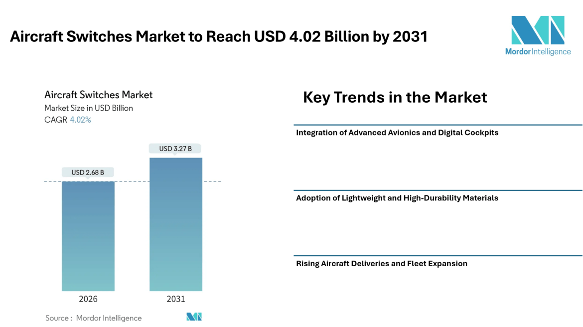 Home Press Releases Aircraft Switches Market to Reach USD 4.02 Billion by 2031, Supported by Advanced Avionics Integration and Rising Aircraft Production – Mordor Intelligence
