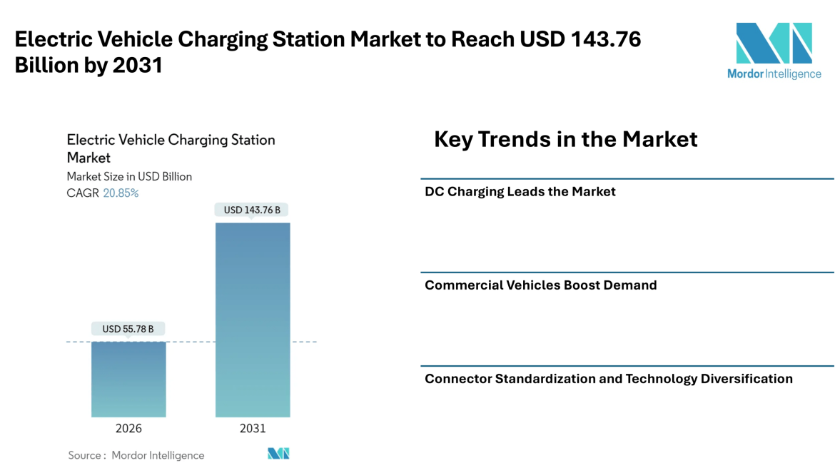 Home Press Releases Electric Vehicle Charging Station Market to Reach USD 143.76 Billion by 2031 – Mordor Intelligence