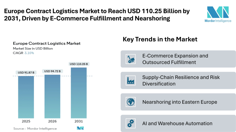 Home Press Releases Europe Contract Logistics Market to Reach USD 110.25 Billion by 2031, Driven by E-Commerce Fulfillment and Nearshoring