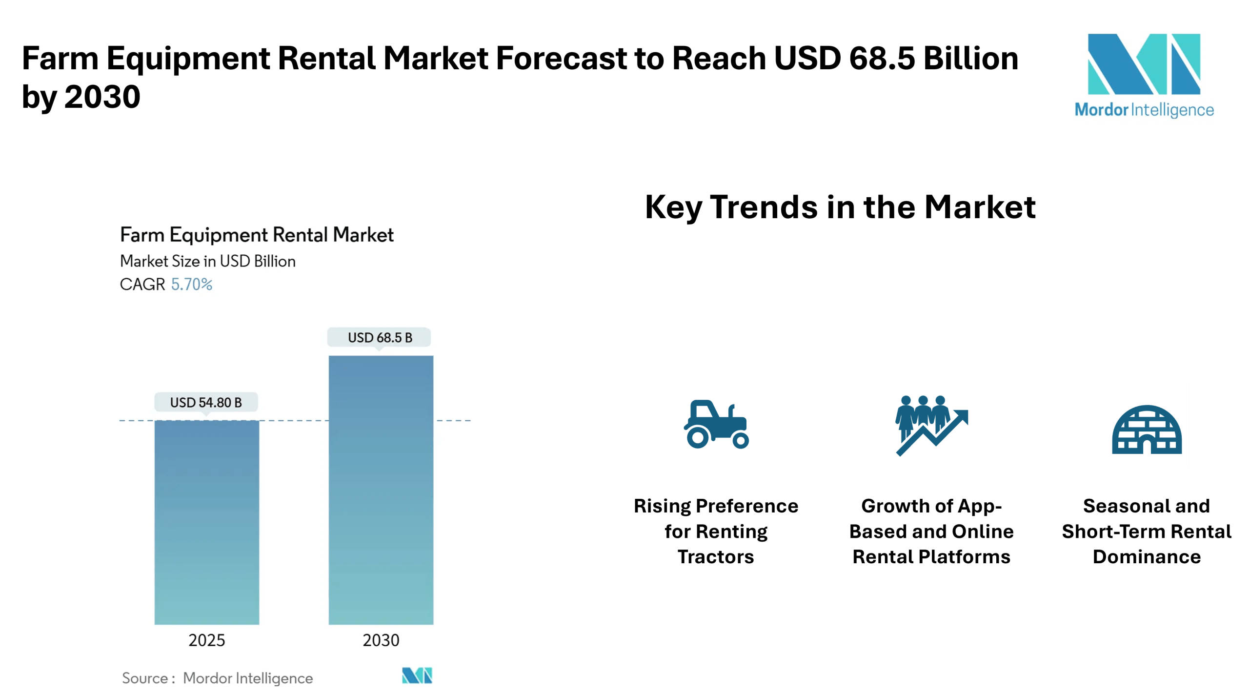 Home Press Releases Farm Equipment Rental Market Forecast to Reach USD 68.5 Billion by 2030, Driven by Tractor Demand, Digital Platforms, and Small Farm Mechanization – Mordor Intelligence