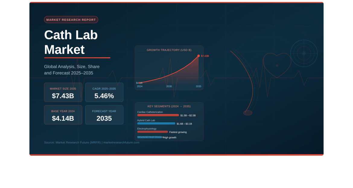 Pune, India — The global Cath Lab Market is charting a strong and sustained growth path, according to the latest Cath Lab Market report published by Market Research Future (MRFR). Valued at USD 4.141 billion in 2024, the market is projected to expand from USD 4.367 billion in 2025 to USD 7.432 billion by 2035, reflecting a compound annual growth rate (CAGR) of 5.46% during the forecast period 2025–2035. This steady expansion signals a deepening global commitment to advanced cardiac care infrastructure, precision diagnostics, and minimally invasive cardiovascular intervention — much like the broader momentum seen in the Longevity Market size projections, where aging population care forms a central pillar of healthcare investment worldwide.