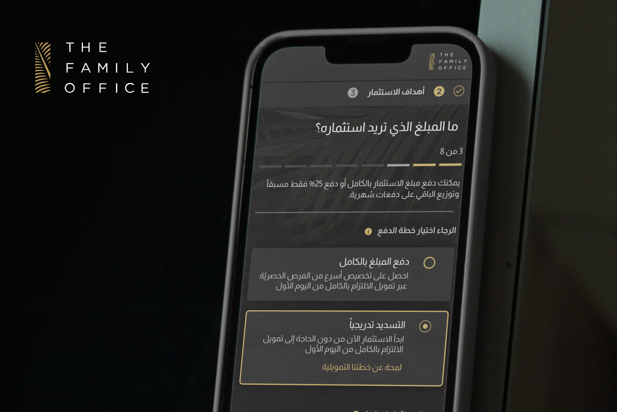 انضم إلى منصة The Family Office هنا للاستثمار الآن والدفع لاحقاً.